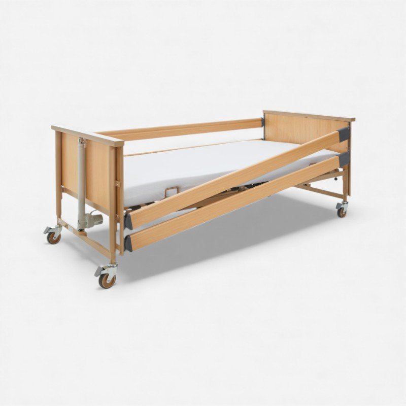 Cama articulada elétrica com elevação vertical, estrado de 4 secções e função Trendelenburg invertido.