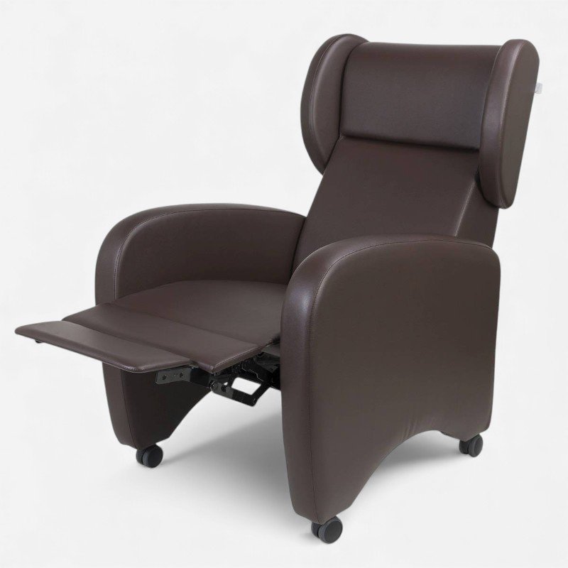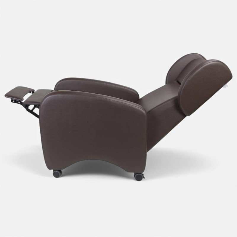 A poltrona permite mudar a posição do utilizador com segurança, sendo ideal para pessoas com dificuldades motoras. O encosto reclina de forma progressiva e o apoio de pernas eleva simultaneamente, garantindo uma postura ergonómica em todas as fases do descanso. O apoio de pernas é ainda extensível/desdobrável, oferecendo maior suporte ao utilizador.